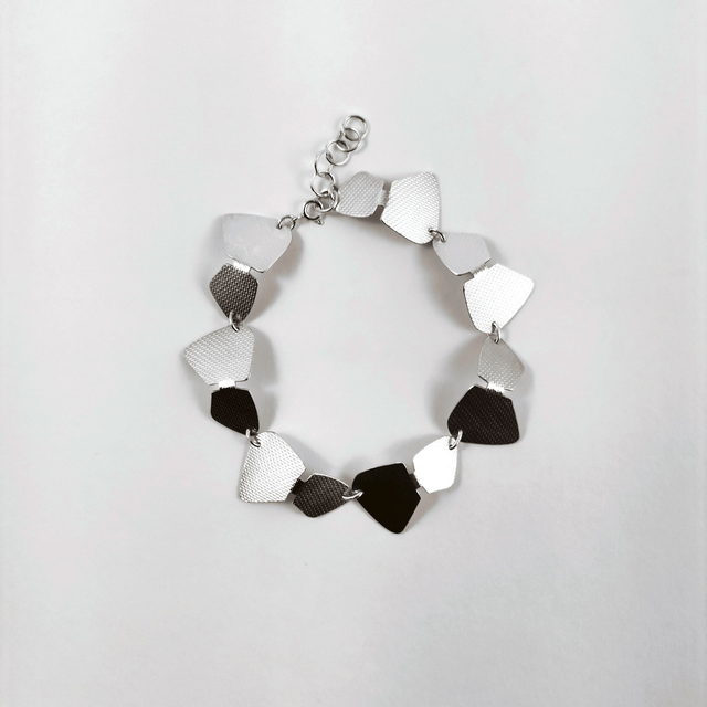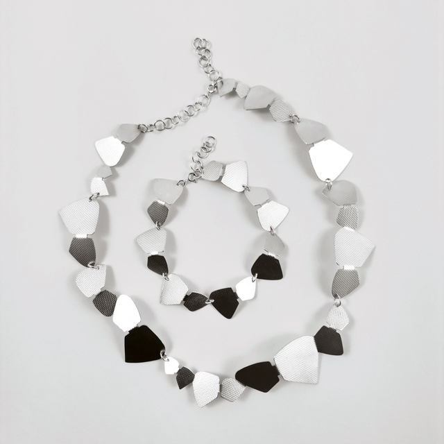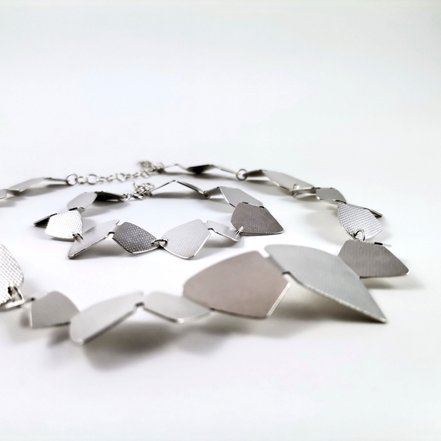 • La col·lecció Papallones neix de la mateixa transformació d'una papallona, sintetitzant-ne la forma, aportant plecs i textures, la papallona es transforma en collarets, arracades, braçalets...